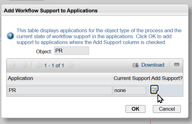 Workflow actions or buttons are not included with any of the applications when you install them. You can add the workflow actions and buttons to an application without activating a process. For example, you can make the actions and buttons visible for user training. You can also create customized toolbar buttons before activating a process.